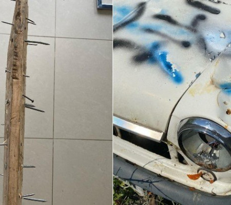 Mesmo assim, a possível gangue acessou o local para golpear janelas, faróis e carrocerias com tacos repletos de pregos. "Destruíram completamente um Mini Sky, Mini Rose, Mini Cooper e um Metro Rio", escreveu Anja em postagem no Facebook.