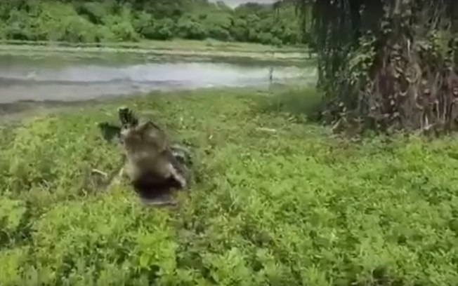 Vídeo: Crocodilo salta de riacho e persegue pescador atrás de peixe