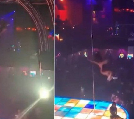 Uma especialista em pole dance viralizou nas redes sociais como "exemplo de profissionalismo" ao cair do alto de uma barra, de cerca de 6 metros de altura, de cabeça para baixo, e continuar no solo a sua apresentação. As informações são do Extra.