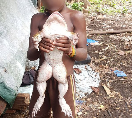Moradores da região de Honiara, nas Ilhas Salomão, na Oceania, ficaram chocados com um sapo gigante. O homem responsável pela descoberta foi Jimmy Hugo, de 35 anos. O homem mora em uma aldeia na capital do país e encontrou o sapo quando estava caçando um porco selvagem.