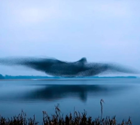 Mas uma delas chamou a atenção de James Crombie, que havia viajado mais de 50 vezes ao local, o lago Lough Ennell, perto da cidade de Mullingar, no Condado de Westmeath, na Irlanda. Os pássaros juntos, em revoada, formaram a imagem de um pássaro gigante, de asas abertas.