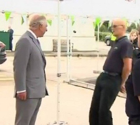 Acompanhado da duquesa da Cornualha, Camilla, Charles se aproximou de um grupo de funcionários de um centro de distribuição e produtos em Bristol (Inglaterra) quando um deles acabou perdendo os sentidos.