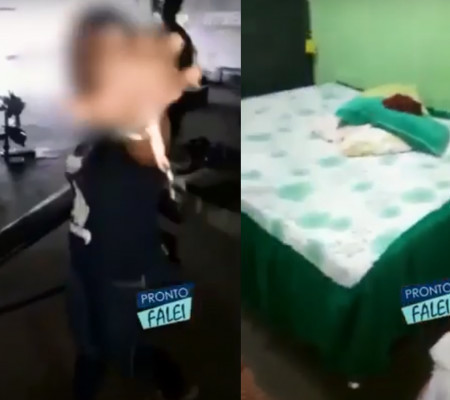 “Peguei no ato ela me traindo aqui, olha só. Olha de onde eu vi a L. saindo. Liguei para ela e ela não atendeu o celular. Olha só a cama está até amassada, suada”, relata, com a voz embargada.