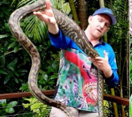 O vídeo foi publicado por Stuart McKenzie na sua página do Facebook Sunshine Coast Snake Catchers e se surpreendeu com o tamanho do animal.