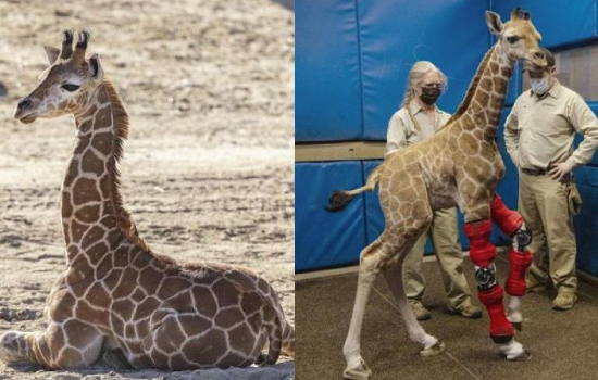 Por conta disso, suas patas dianteiras da girafinha dobraram para o lado errado, fazendo com que o animal não conseguisse andar.