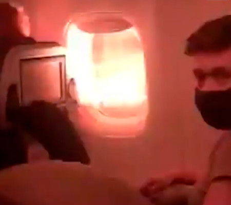 As imagens têm circulado pela internet e espantam pela aparente calma dos passageiros que usam máscaras no rosto. No vídeo, é possível ver que a cabine ficou completamente às escuras e o rosto das pessoas só consegue ser observado quando o fogo explode na turbina, juntamente com um som de explosão abafado no lado externo.