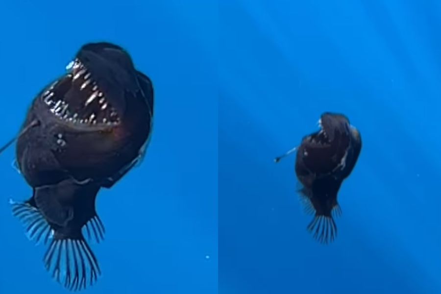 Um flagrante surpreendente e raro! Pela primeira vez, foi registrado em águas abertas um peixe diabo negro ou rape abissal (Melanocetus johnsonii) vivo e em sua forma adulta. O momento foi gravado por biólogos da ONG Condrik Tenerifena na costa de Tenerife, nas Ilhas Canárias, Espanha, no dia 26 de janeiro.