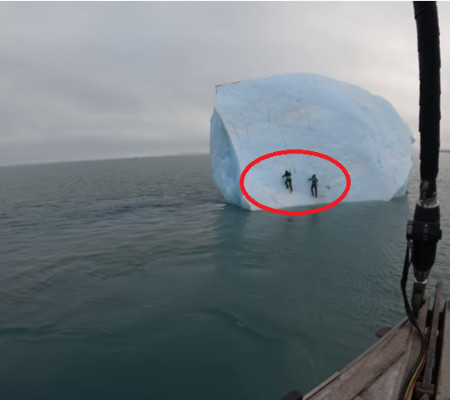 Vídeo regista iceberg gigante tombando em cima de dois exploradores | Foto: reprodução
