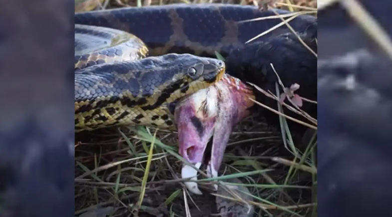 Porém, matam as suas presas por constrição, enrolando-se ao redor do animal até o sufocar antes de engoli-lo por completo. “Chegamos mais perto e ficamos observando todo o processo dela, a estratégia. Ela estava toda enrolada no urubu e logo começou a levá-lo para a água.]Foi realmente surreal!”, disse a bióloga.