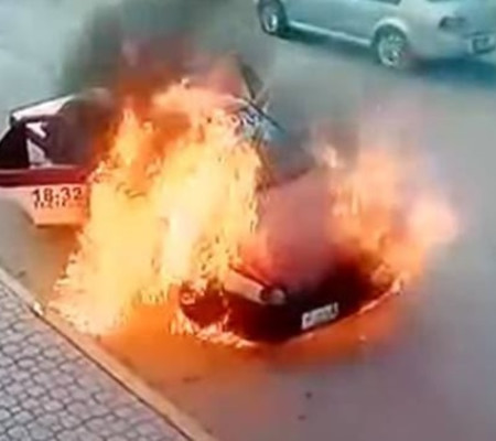 Um vídeo que circula nas redes sociais mostra o incêndio de um táxi em Santa Cruz Xoxocotlán, Oaxaca, México. Você pode ver como um transeunte avisa o taxista que seu veículo tem um vazamento.
