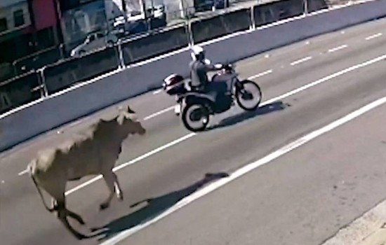 Vídeo: Vaca invade pista e “atropela” duas pessoas em São Paulo