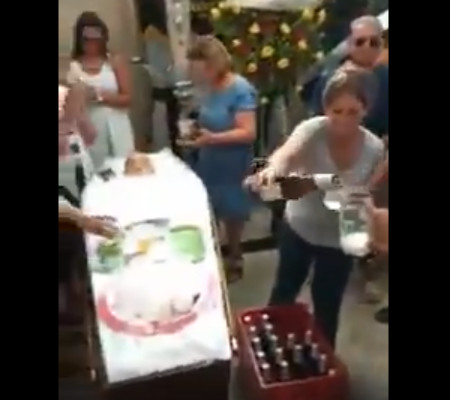 Os convidados estranharam a situação, mas consumiram a cerveja, que estava em cima do caixão. As informações são do Portal CM7.