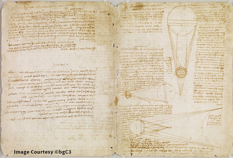 Produzido entre 1508 e 1510, o Codex Leicester reúne textos e desenhos feitos por Da Vinci. A obra é composta por 18 folhas de papel, dobradas ao meio, totalizando 72 páginas com conteúdo escrito em ambos os lados. São 360 ilustrações e esboços desenhados à mão pelo próprio Leonardo, todos redigidos em italiano. Um detalhe que chama a atenção é o uso da famosa escrita em espelho, característica marcante do artista.