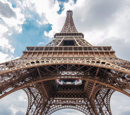 A Torre Eiffel foi projetada pelo engenheiro Gustave Eiffel que dá nome ao ponto turístico, ela é o edifício mais alto de Paris e também o monumento pago mais visitado em todo o mundo. No princípio, ela era temporária e seria apenas um arco para a entrada da Exposição Universal de 1889. Ela possui 324 metros de altura e foi a estrutura mais alta do mundo até 1930 quando perdeu seu posto para o Chrysler Building de Nova York.