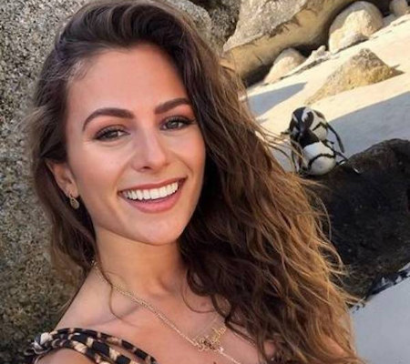 Steph Elswood fez uma selfie com os pinguins ao fundo e postou para os seus quase 240 mil seguidores no Instagram.