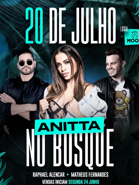 O show Anitta no Bosque acontece dia 20 de julho no Bosque da Boate Moon, situada atrás da casa noturna que fica localizada na avenida Raul Lopes, zona leste de Teresina.