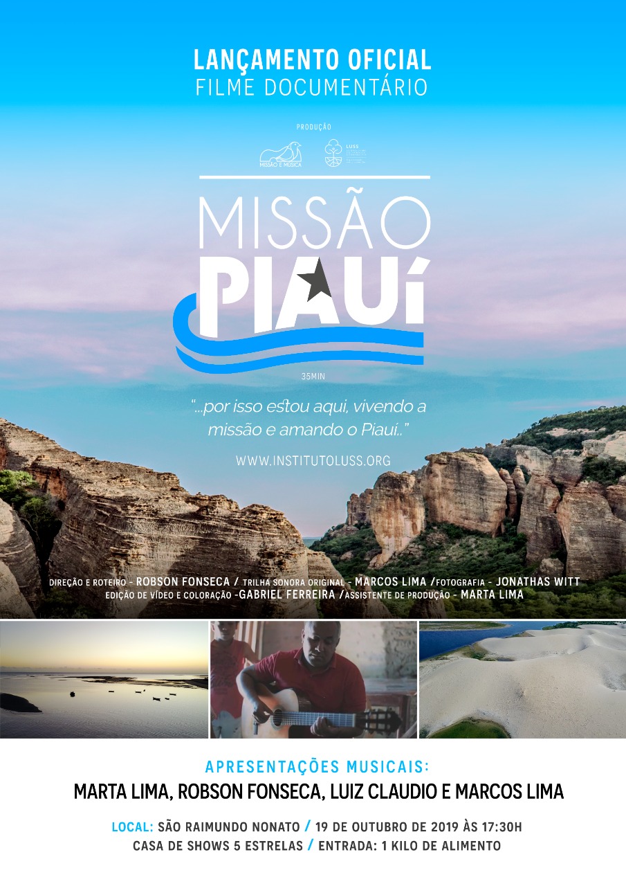 No próximo dia 19, Dia do Piauí, o documentário “Missão Piauí” terá seu lançamento no município de São Raimundo Nonato na Casa de Show 5 Estrelas a partir das 17h30. A entrada será um kilo de alimento. Na ocasião em lugares simultâneos no Brasil e no exterior, estarão assistindo através das plataformas digitais (Youtube, Instagram e Facebook).