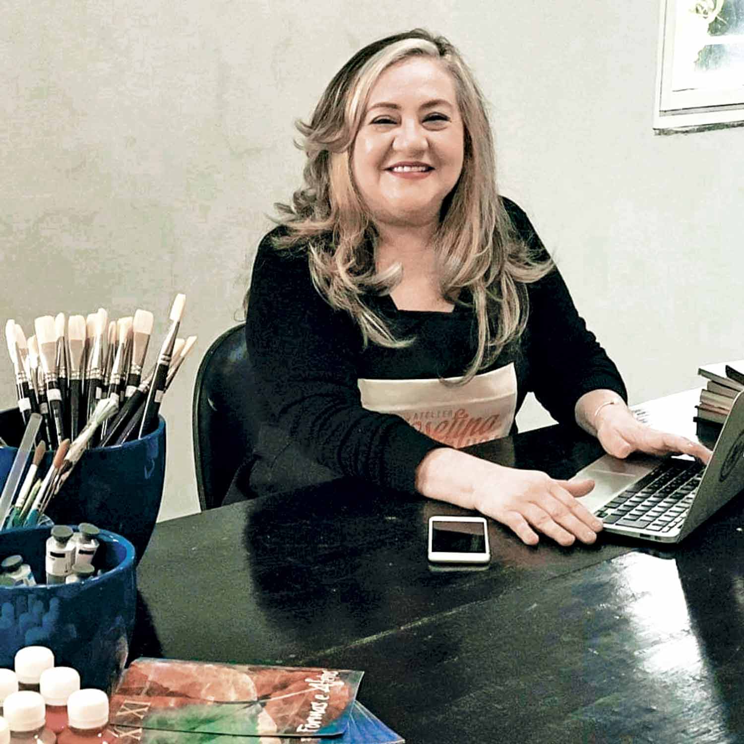 Delma Braga se inspirou nos anjos para compor sua tela. Josefina escolheu também esta temática destacando entre o brilho e cores a forma delicada desses seres celestiais.