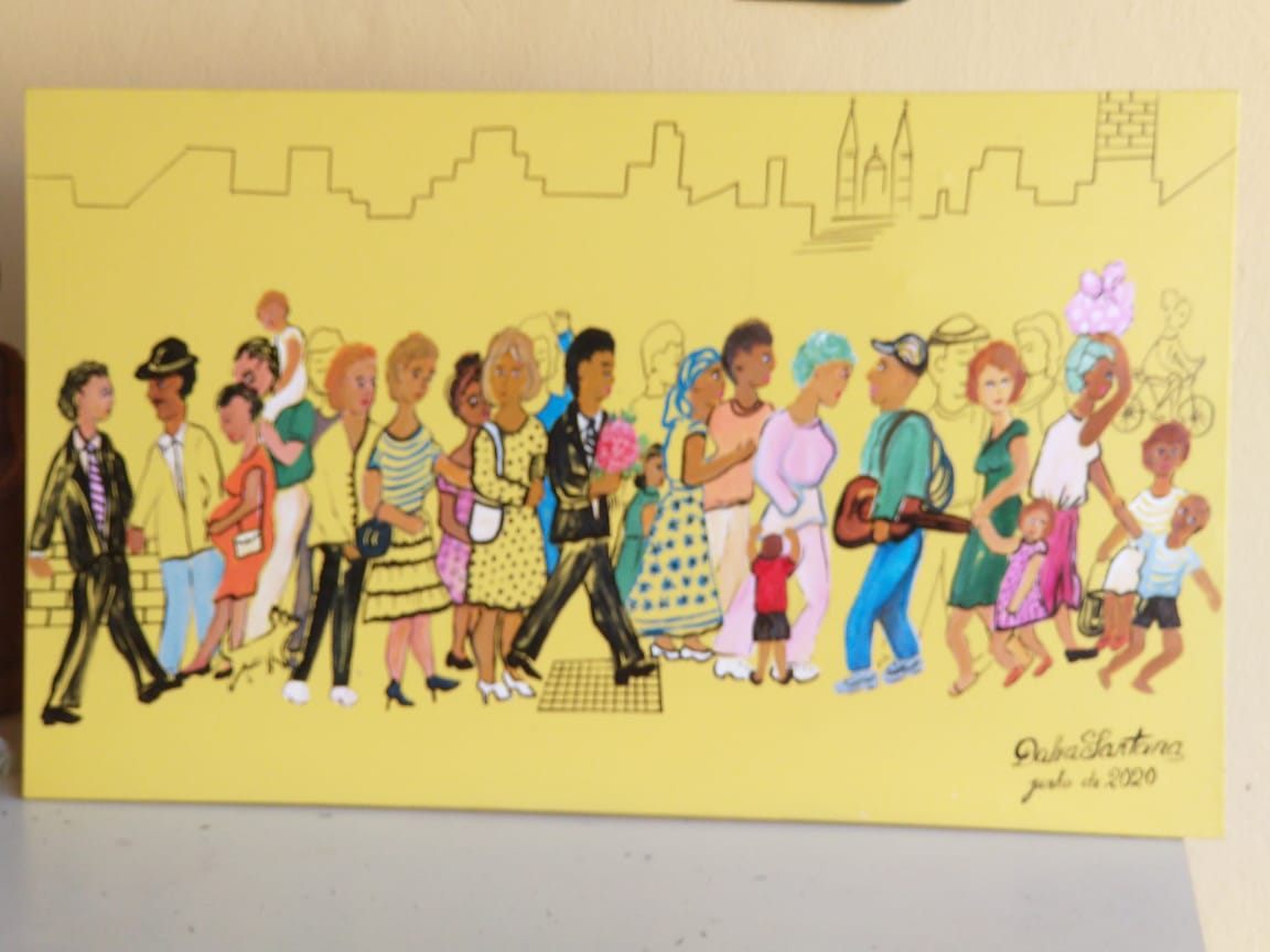 São telas e esculturas que caminham em meio ao seu cotidiano, agora, bem diferente do que vinha vivendo ao longo de todos esses anos. Nessa nova rotina, é possível perceber, um novo olhar sobre a vida, as pessoas, as relações, o valorizar cada momento. E a arte também inspira como forma de fugir ao isolamento social importo pela pandemia Observando o dia a dia, Dalva Santana vai construindo personagens e histórias que ganham vida através das cores e formas.