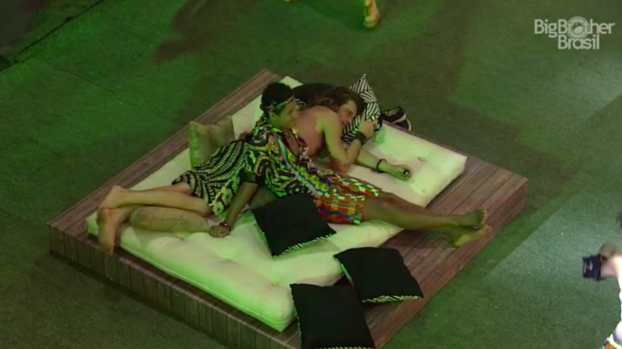Alberto Mezzetti estava deitado em um dos futtons do jardim observando Elana dançar quando Danrley se juntou ao italiano e logo perguntou: "Tá só de olho na Elana, né?". O brother sorriu.