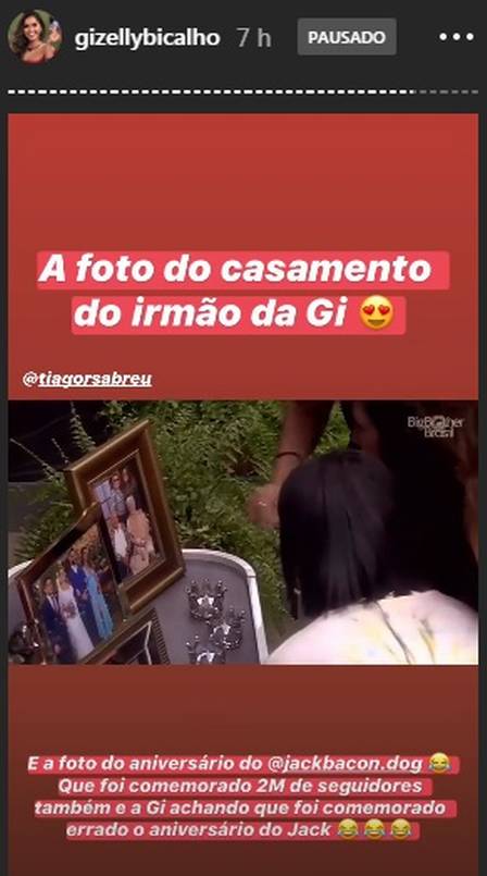 A família de Gizelly confirmou que a foto representava o aniversário do cachorro de estimação da participante do "BBB20", mas também celebrava os 2 milhões de seguidores no Instagram.