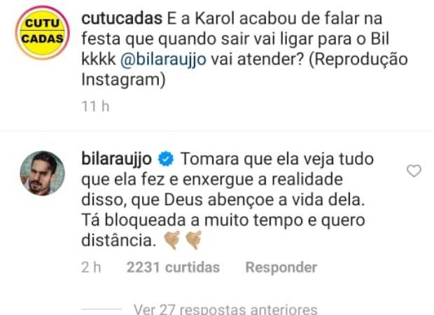Depois que deixou o Big Brother Brasil, Arcrebiano não escondeu sua decepção com Karol. Em entrevista a Ana Maria Braga, ele disse que se sentiu alvo de manipulações no reality show. "Fui muito manipulado no BBB. E as meninas também foram alvo de uma manipulação da Karol. Ainda estou muito triste com a situação que me envolveu com a Carlinha e o Arthur", avaliou.