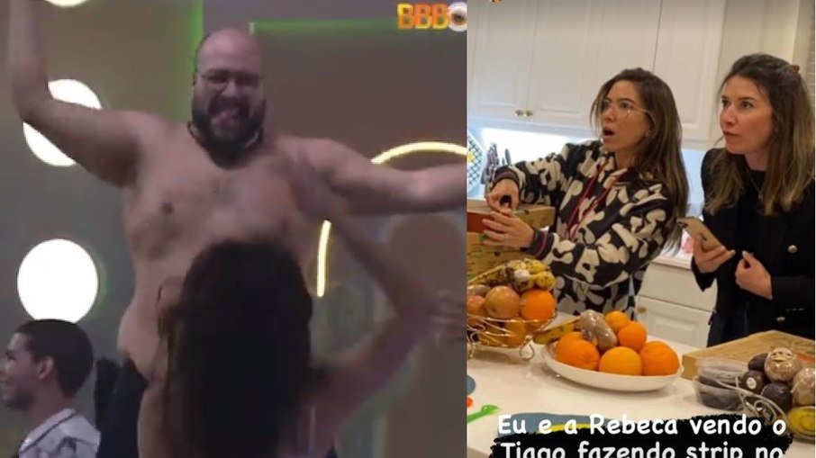 “Eu e a Rebeca vendo o Tiago fazendo strip no BBB”, escreveu a apresentadora.