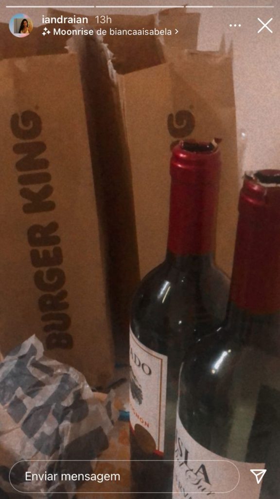 Júlia Peixoto, influenciadora e maquiadora, assistiu ao programa dessa noite junto da cantora e chegou a compartilhar fotos da mala que voltou do BBB. Outra que também foi ao encontro de Maria foi sua produtora, Iandra Rodrigues. Em outra foto compartilhada nas redes sociais, a amiga da atriz deu a entender que a noite teve direito a vinho e lanches do Burger King.