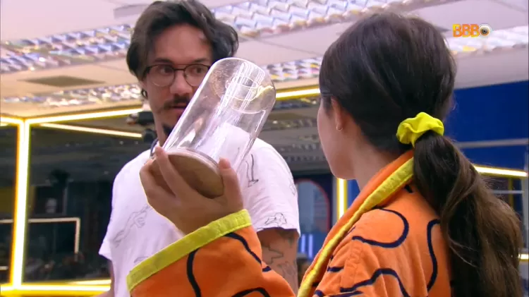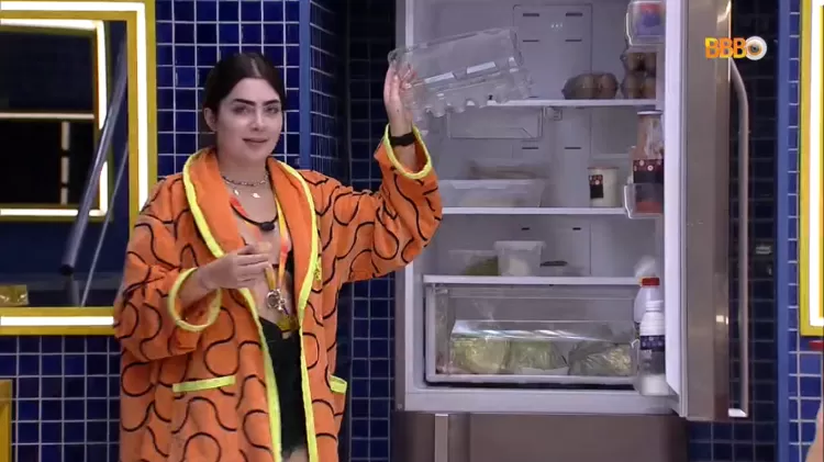 "Caralho, acabou o queijo. Ele come em um dia a comida de uma semana. Eu vou ter que falar com o Lucas", reclamou Jade em conversa com Vinicius Fernandes, Bárbara Heck, Laís Caldas e Eliezer Netto na cozinha. "Dessa granola eu não comi nada. Fui repondo, e de repente não tinha mais", completou a influenciadora.
