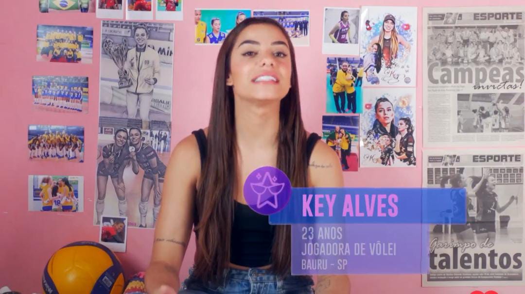 A jogadora de vôlei Key Alves tem 23 anos e é de Bauru, em São Paulo. É líbero do clube Osasco São Cristóvão Saúde e também trabalha como influenciadora digital, tendo mais de 7 milhões de seguidores.
