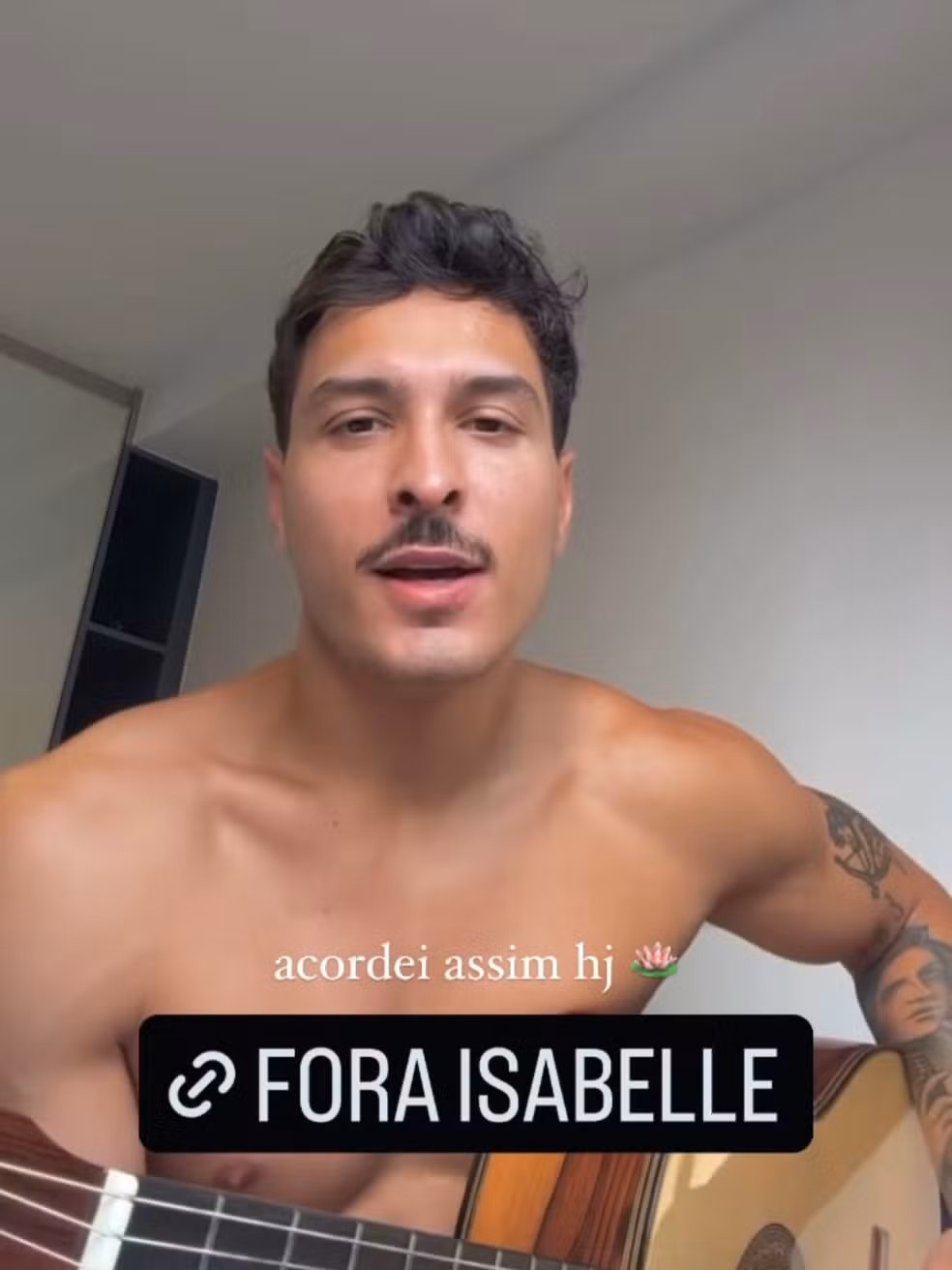 Música - No domingo (14), o cantor usou seu perfil para compartilhar outro vídeo, desta vez cantando a música "Voando Pro Pará", de Joelma, e pedindo votos para Isabelle. "Acordei assim hoje", escreveu ele, incluindo o emoji de vitória-régia, que representa a torcida de Alane.
