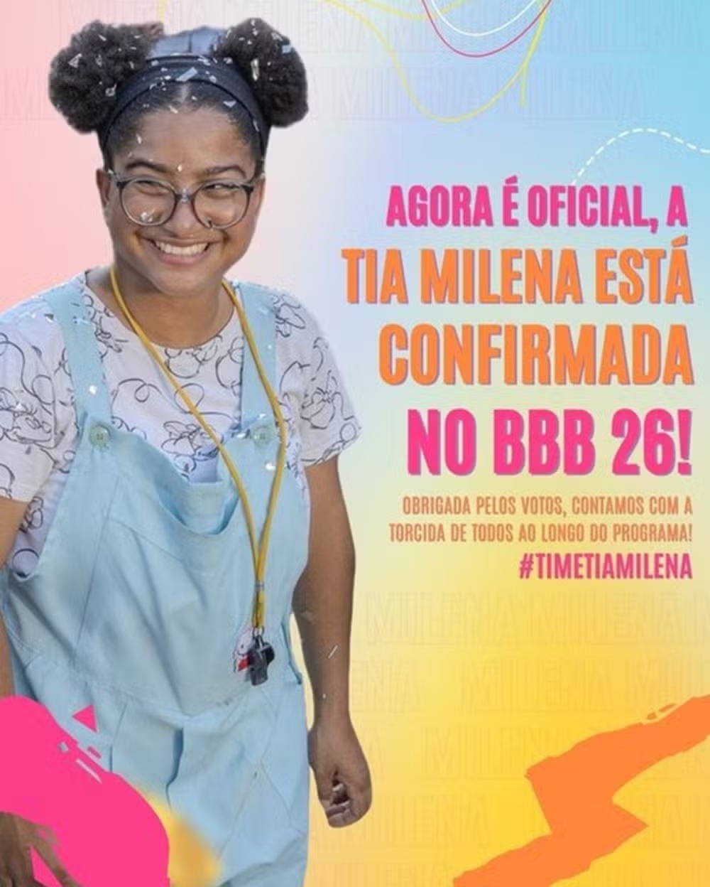 Milena, animadora de festas infantis, passou a ser chamada de “tia Milena” pelos participantes da casa, inclusive por quem não é aliado. Fora do confinamento, a equipe que administra o perfil da mineira tentou impulsionar a torcida com uma hashtag, mas a junção das palavras acabou gerando duplo sentido e virou motivo de piada entre internautas.