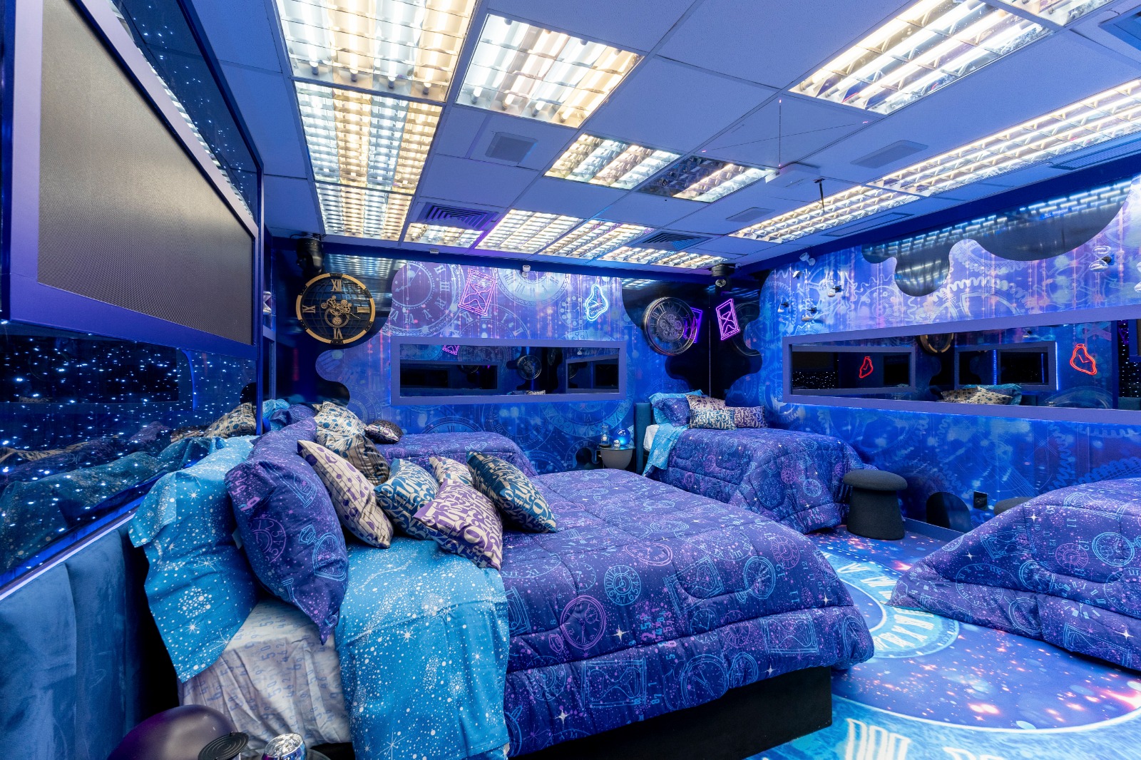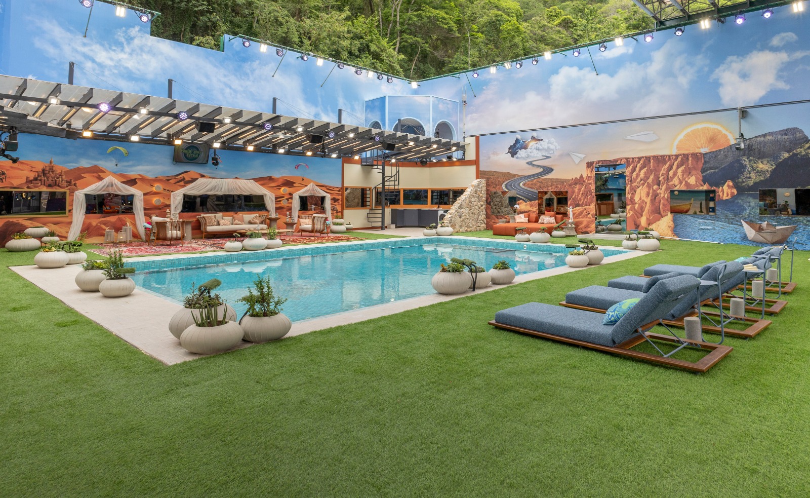 Um detalhe que chama atenção nesta edição é a presença de apenas uma mesa, pensada para reunir todos os brothers. A área externa traduz o sonho da aventura, com cenários surreais que misturam deserto, geleira, praia e até o espaço sideral.