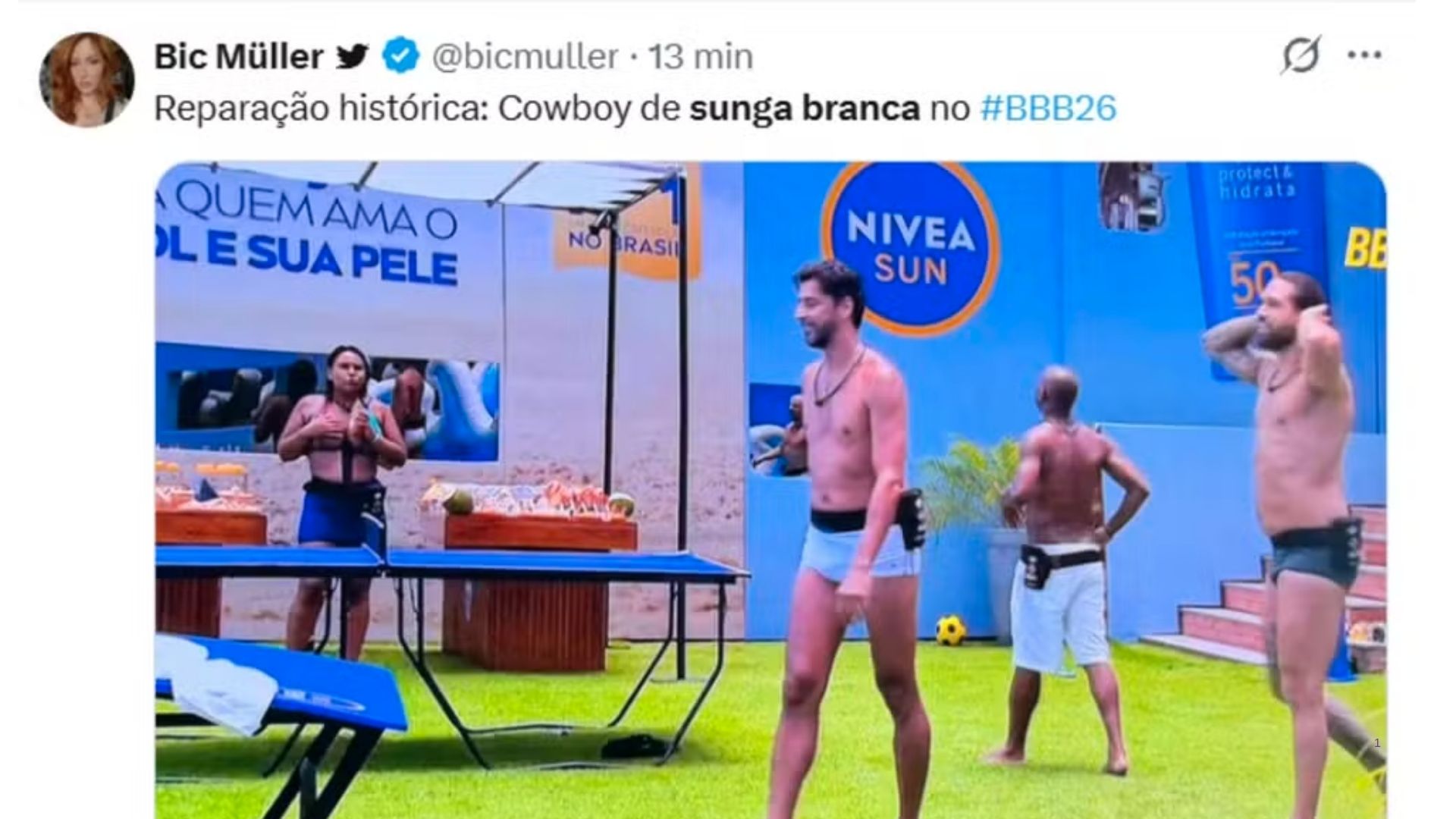 Alberto Cowboy chamou atenção ao escolher uma sunga branca para a pool party do BBB 26, realizada neste domingo (1), dentro da casa mais vigiada do Brasil. O visual rapidamente repercutiu nas redes sociais, porque remeteu a uma das maiores brigas da história do reality, envolvendo o próprio brother em uma edição passada, relembrada pelos internautas.