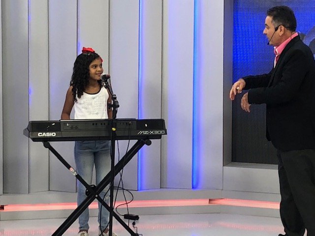 Railena Show, de apenas 8 anos, canta, toca teclado é compositora.
