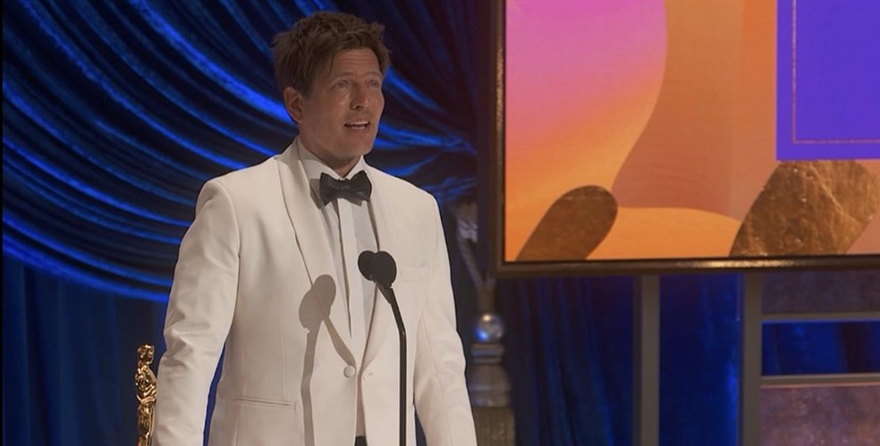 Thomas Vinterberg, diretor dinarmaquês, vence o Oscar de Melhor Filme Internacional com 'Druk' — Foto: Reprodução/Oscar