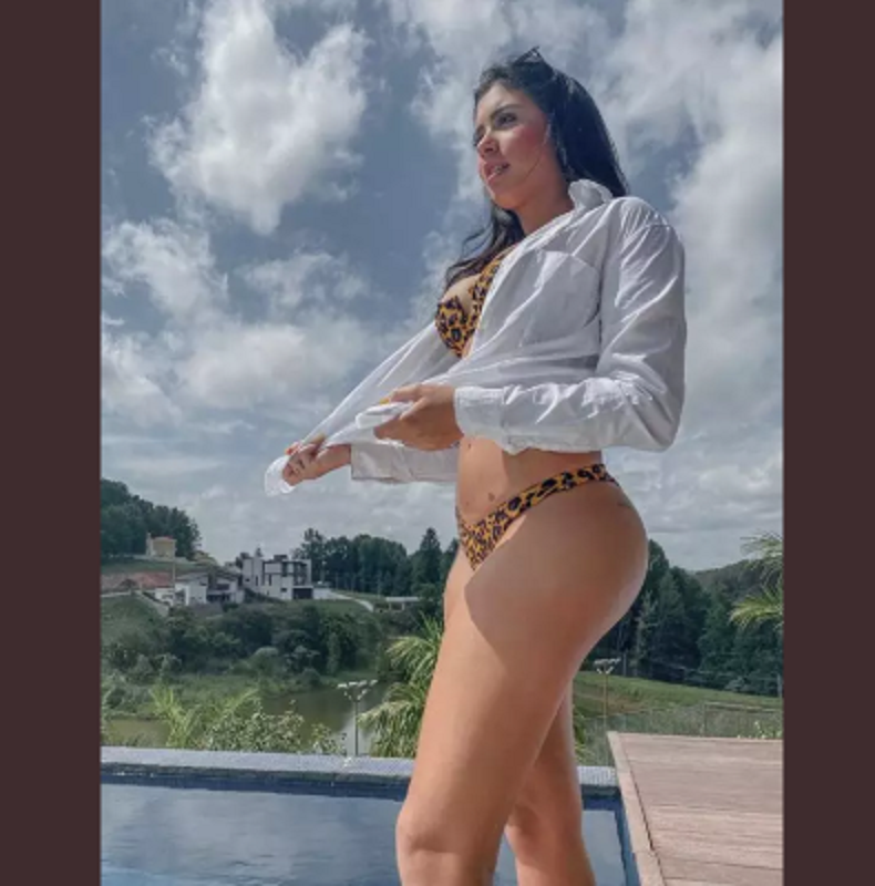 Aos 19 anos, a jovem ostentou as curvas e quase deixou o bumbum em evidência. “Valorize”, escreveu ela na legenda do clique, tirado à beira da piscina.