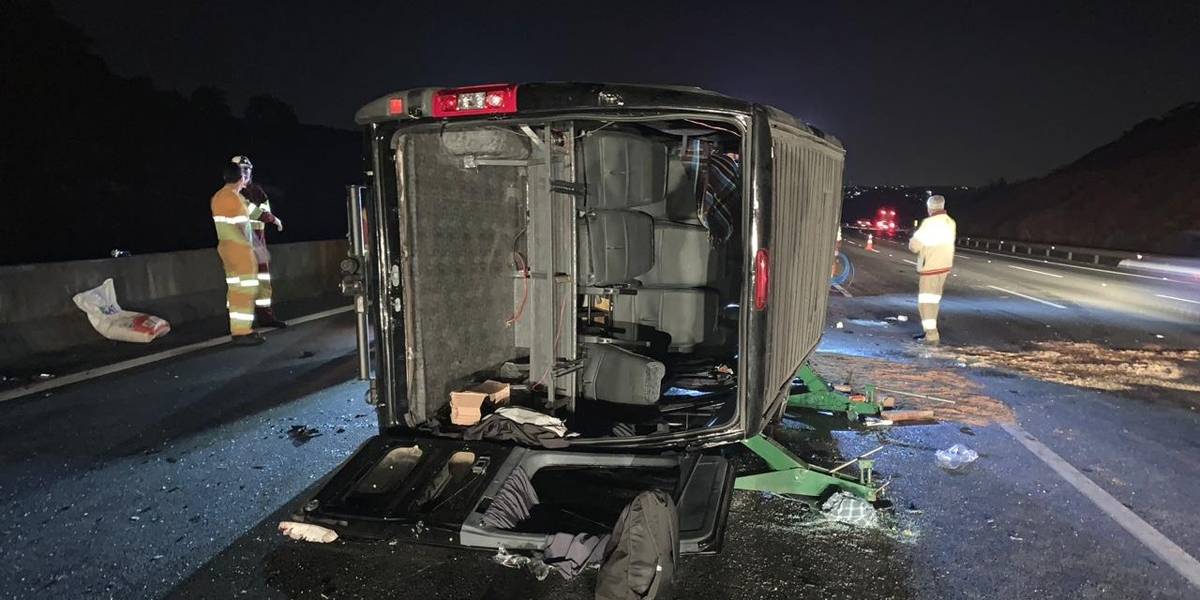 Duas pessoas tiveram escoriações e não precisaram de socorro.Por causa do acidente, duas faixas da rodovia ficaram interditadas e só foram liberadas por volta de seis e meia da manhã.