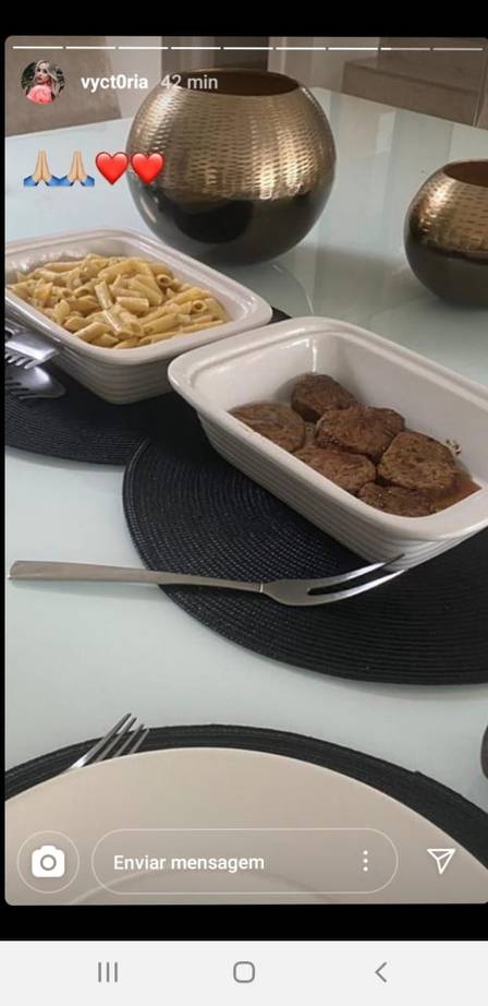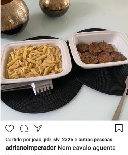Mas uma foto acabou comprovando a volta do relacionamento. Adriano postou a foto do almoço de ontem, como quase sempre faz. Era macarrão e bife, pedidos no delivery de um restaurante. Nos stories da estudante de Medicina: o mesmo registro do menu.