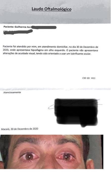 A defesa do empresário disse ainda que seu cliente teve um derrame no olho, decorrente do soco que levou do Henri. "Ele foi ao médico no dia seguinte, e recebeu o laudo de um derrame no olho".