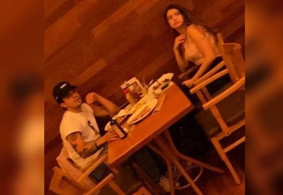 Foto do cantor com modelo em jantar romântico foi enviada para o jornalista Leo Dias - Foto: Reprodução
