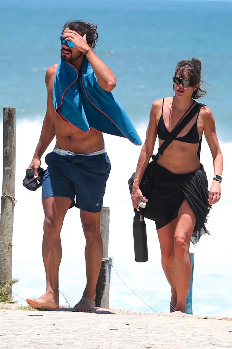A atriz apostou em um biquíni preto, destacando a boa forma, enquanto Simas escolheu uma bermuda azul. Os dois usaram óculos escuros e, ao final do passeio, foram vistos caminhando pela orla. Sorridentes, chegaram até a acenar para o paparazzo que registrava o momento.