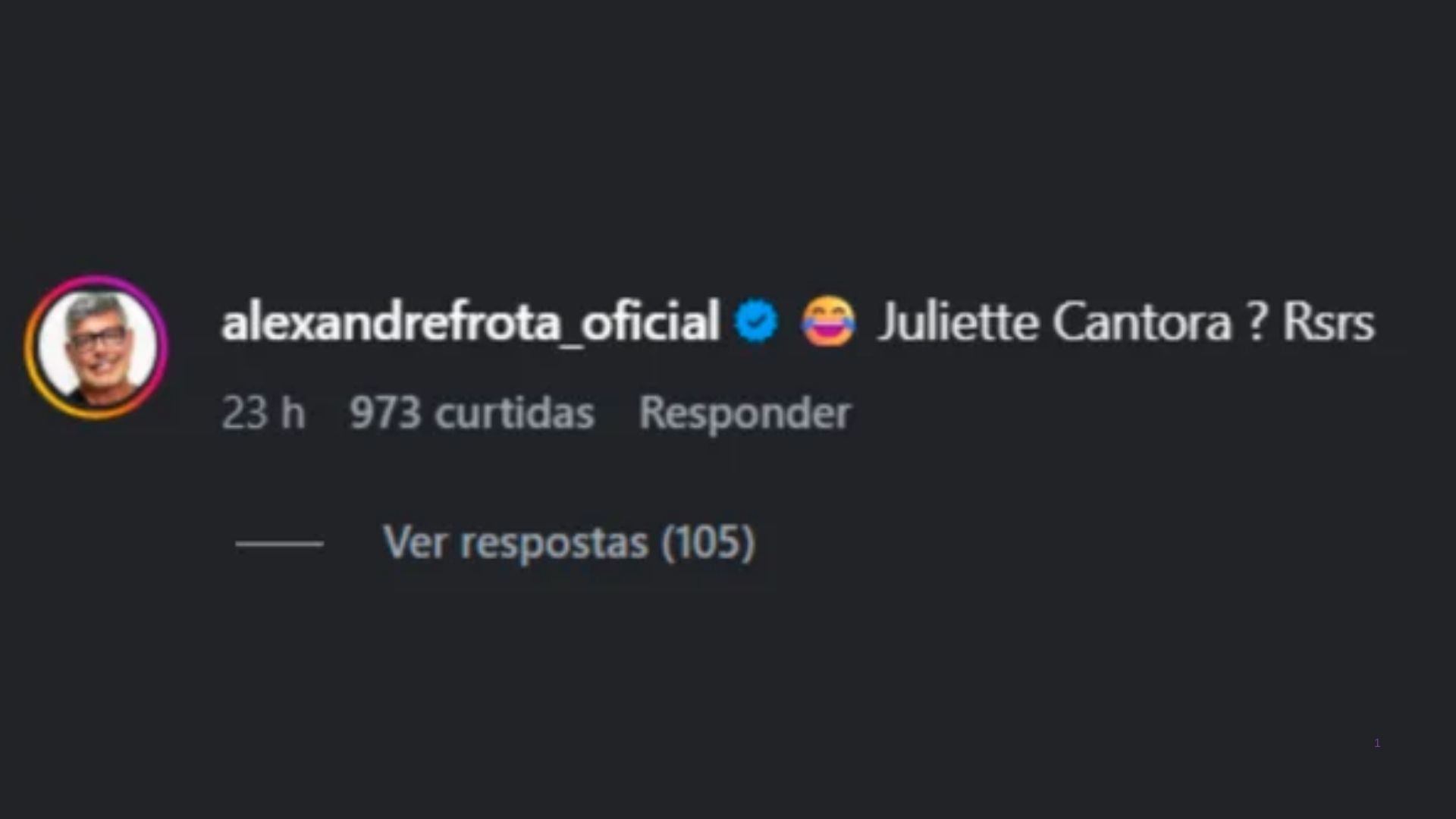 Diante da repercussão, Frota comentou em uma publicação da coluna Fabia Oliveira no Instagram que destacava o episódio e ironizou o desempenho de Juliette como artista. “Juliette cantora? Rsrs”, escreveu ele, provocando nova onda de reações entre internautas.