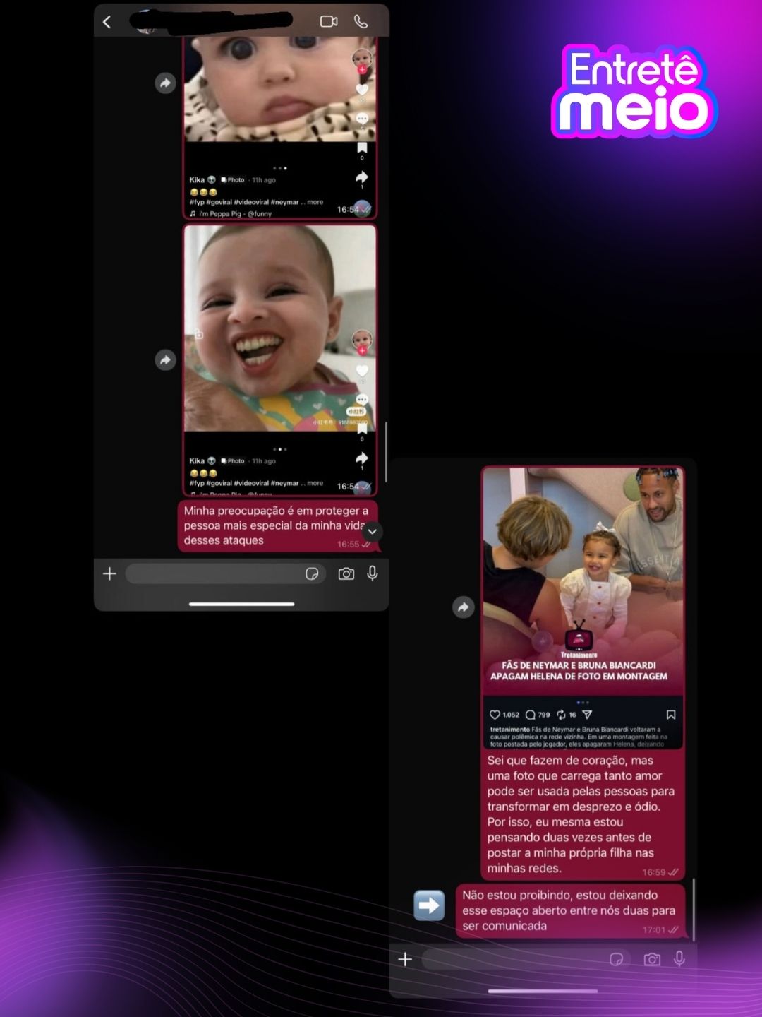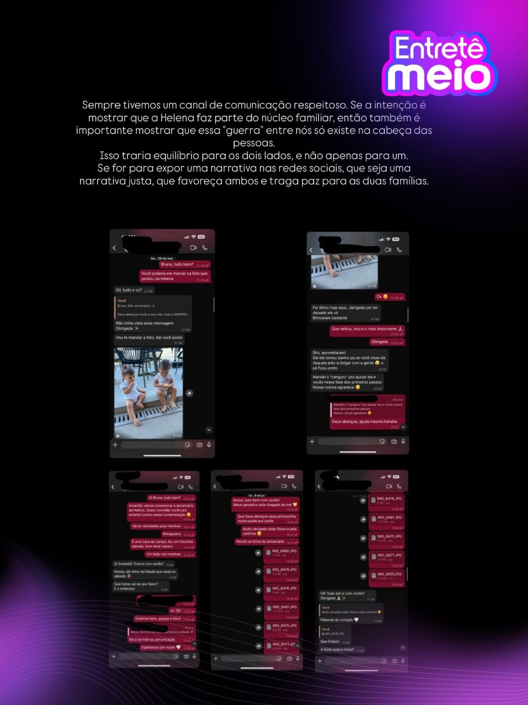Isso traria equilíbrio para os dois lados, e não apenas para um. Se for para expor uma narrativa nas redes sociais, que seja uma narrativa justa, que favoreça ambos e traga paz para as duas famílias.