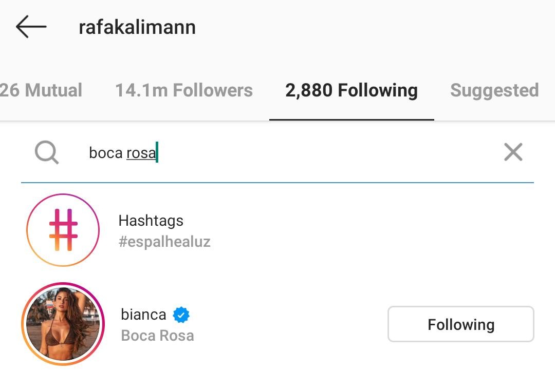Agora é possível encontrar o perfil de Bianca ao pesquisar nos seguidores de Rafa e vice versa. As duas haviam parado de se seguir após uma briga que as duas tiveram no início do BBB 20, bêbadas em uma festa, em que acabaram se exaltando.