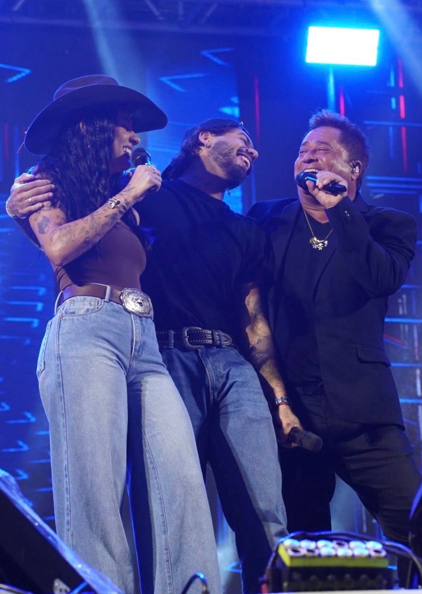 Durante a apresentação, o trio cantou o clássico “Evidências”. Em vídeo publicado nas redes sociais da prefeitura de Sarandi, os artistas aparecem abraçados e cantando juntos no palco