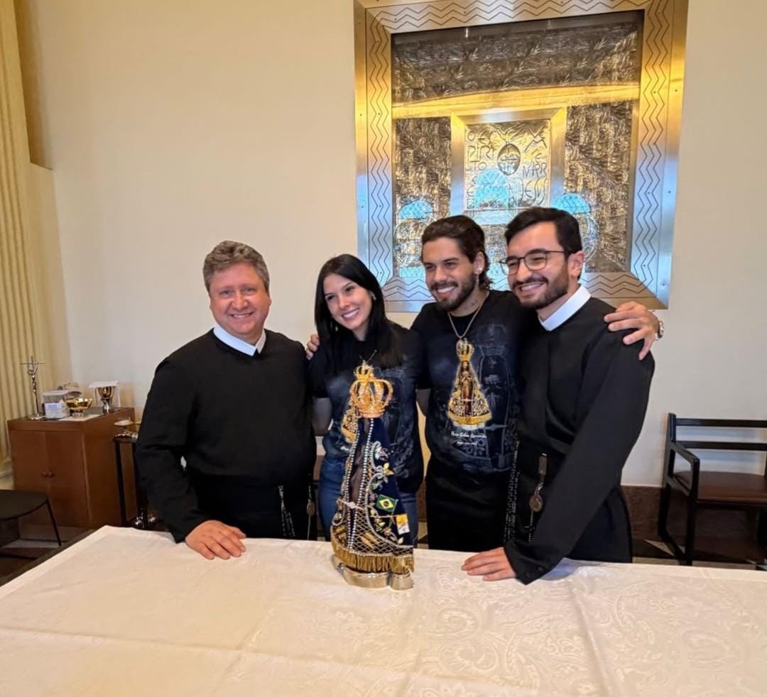 Durante a visita, os cantores, que vestiam camisetas pretas com a imagem de Nossa Senhora Aparecida, tiveram acesso a um espaço reservado e puderam tocar a imagem original da Padroeira do Brasil, que fica protegida em um nicho blindado. No local, fizeram orações e agradeceram pelas conquistas pessoais e profissionais.