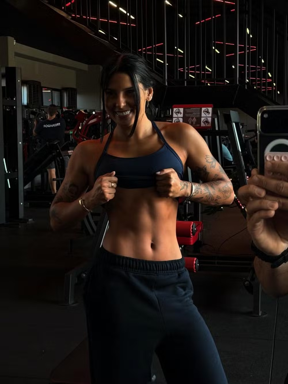 Ana Castela, de 22 anos, voltou a chamar atenção nas redes sociais ao compartilhar um momento do treino nesta terça-feira (28). A cantora mostrou o abdômen definido ao levantar a blusa e ainda divertiu os seguidores ao comentar sua nova pose favorita diante do espelho da academia.