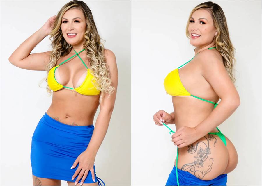 Andressa Urach fez um ensaio em que aparece de biquíni verde e amarelo para promover mais uma edição do concurso Miss Bumbum, que a lançou para fama. Nas imagens, a modelo de 35 anos deixa à mostra a tatuagem que tem nos glúteos, um desenho em preto e branco com flores. As informações são da Revista Quem/Globo.