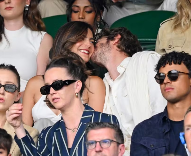 Os atores chegaram de mãos dadas e com looks combinando — ela usava um vestido longo e ele, calça e camisa social brancos — para prestigiar o torneio de Wimbledon, em Londres, na Inglaterra. Na arquibancada, foram flagrados se divertindo e trocando beijinhos.